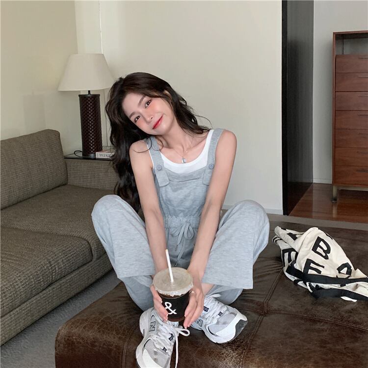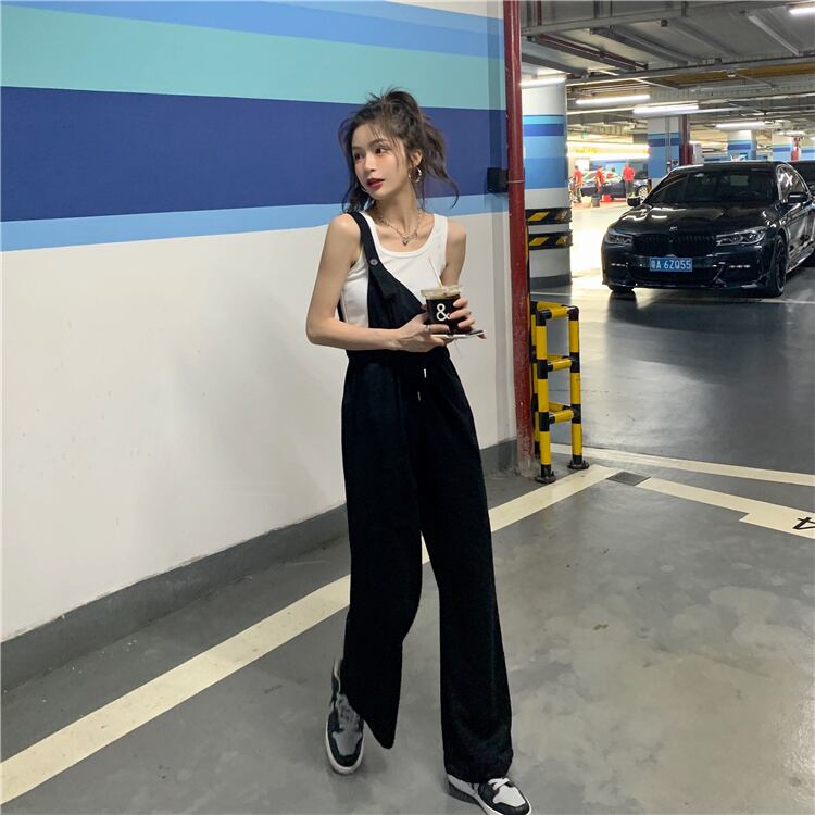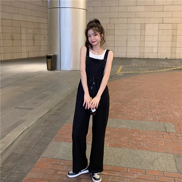 ブラックパンツ サマールーズカジュアルハイウェスト薄手オーバーオール 夏物 試着室51017187129