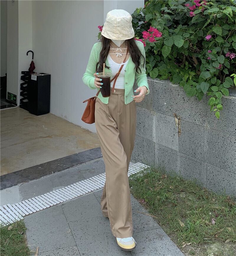 カーキカジュアルパンツ サマールーズハイウェストウェスト薄手 夏物 試着室62010778160
