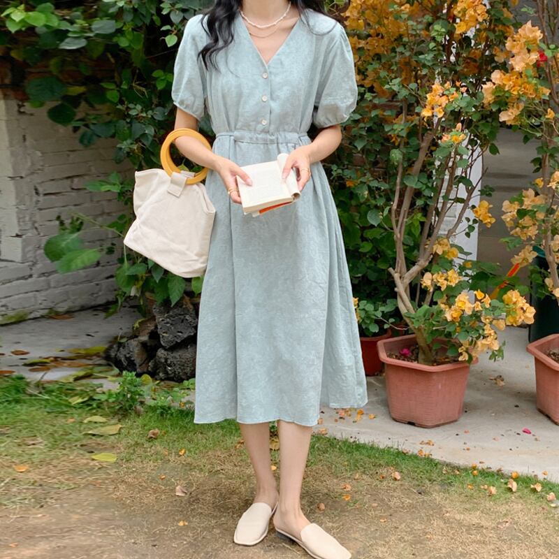 Vネックスリーブドレス サマーロングスカート 夏物 試着室9210821387