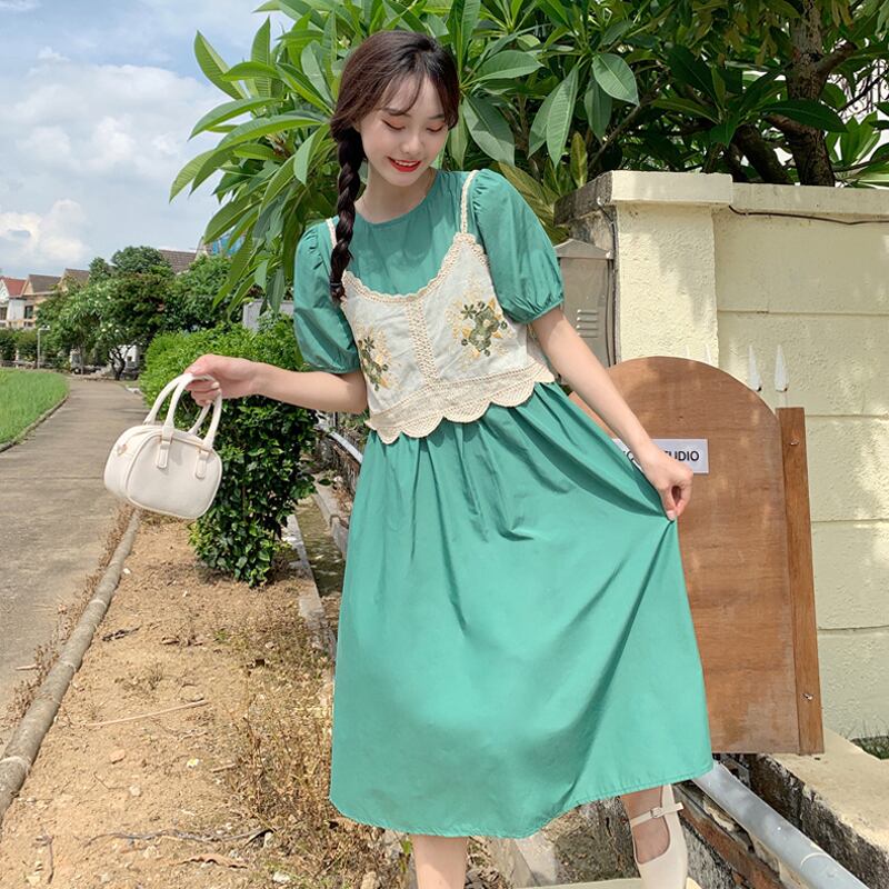 色:一枚の刺繡スリング,白いワンピースのワンピース,アプリコットスカートのワンピース,緑のスカートワンピース
