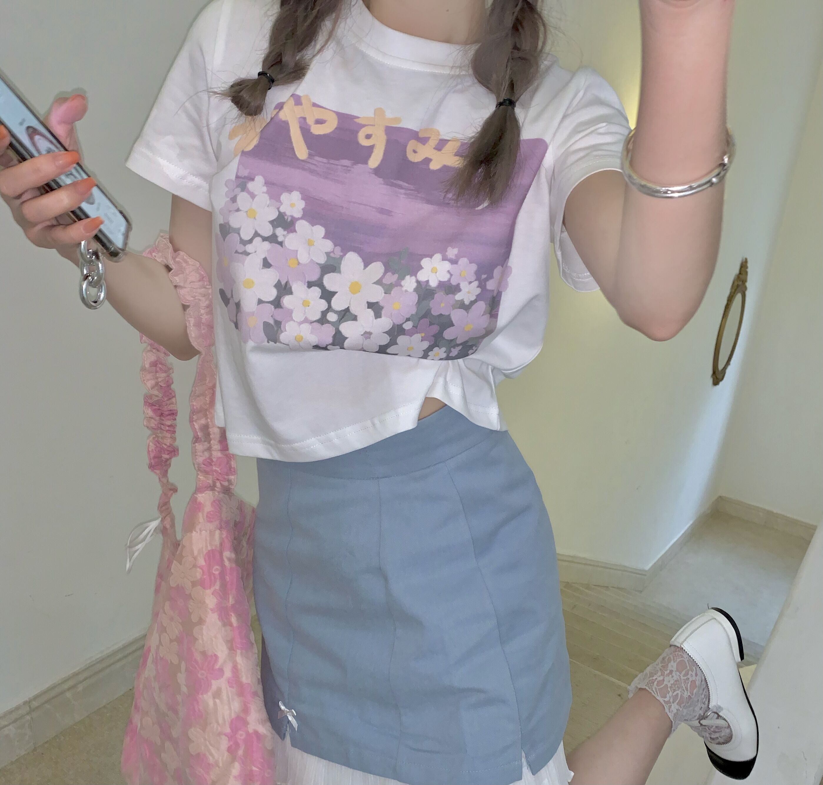 ショートTシャツ サマーハイウェストウェストトップス 夏物 試着室93025536843