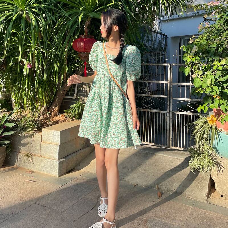 フローラルドレス サマースリーブショートスカート 大人ガーリー スウィート キュート カジュアル 夏物 花柄 試着室59834785460