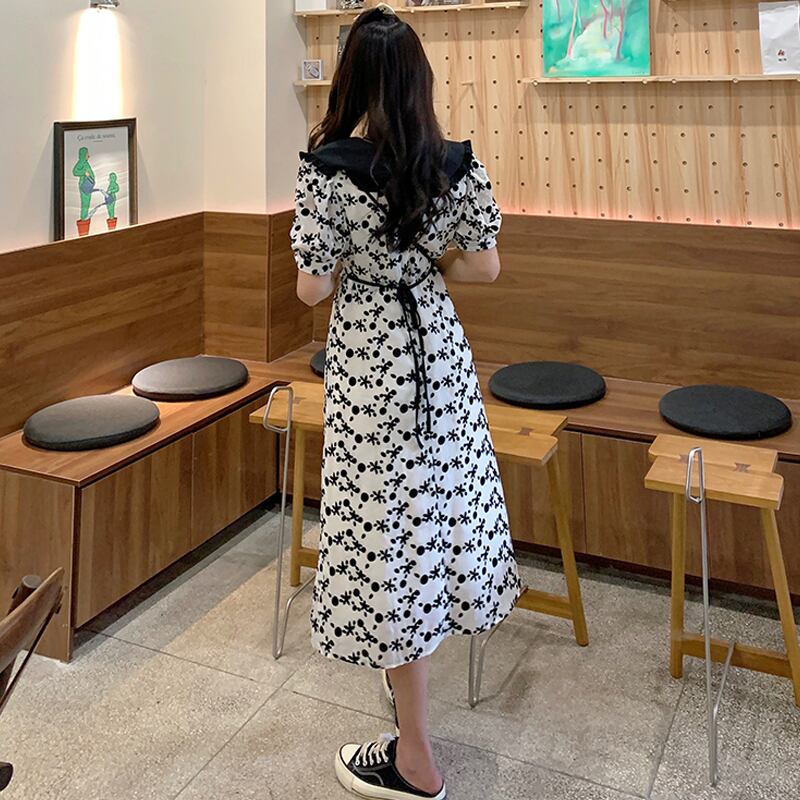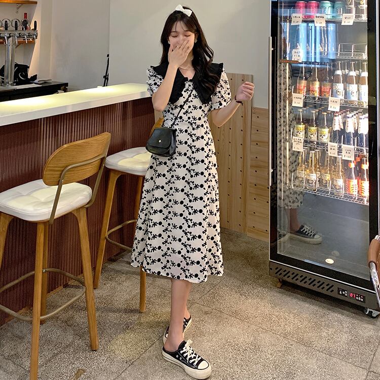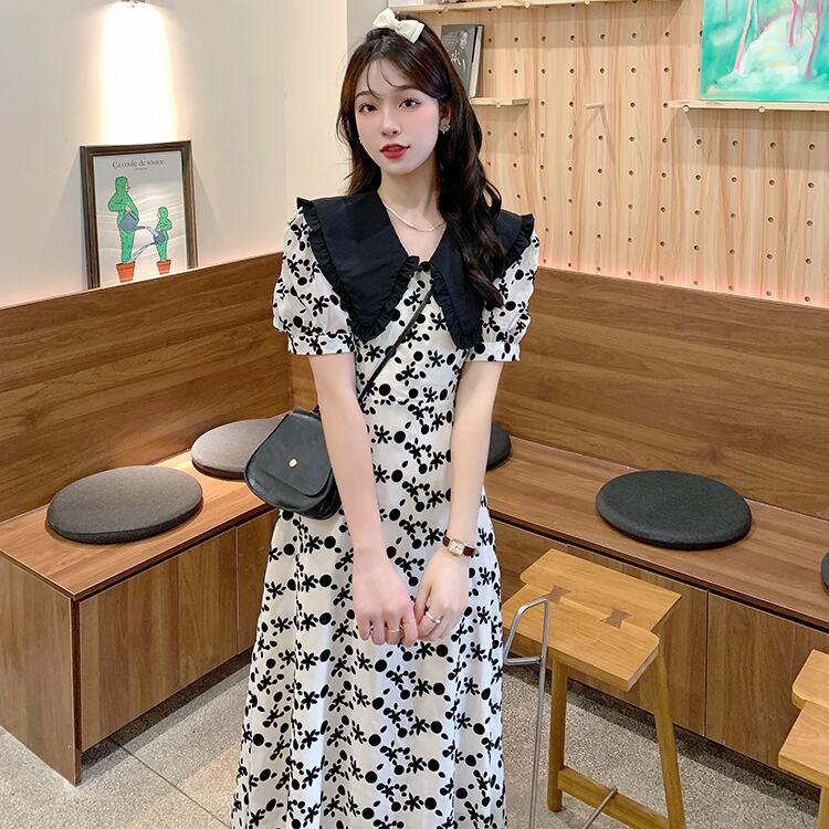 スリーブフローラルドレス サマースタイルカラーロングスカート 夏物 花柄 試着室41219226623