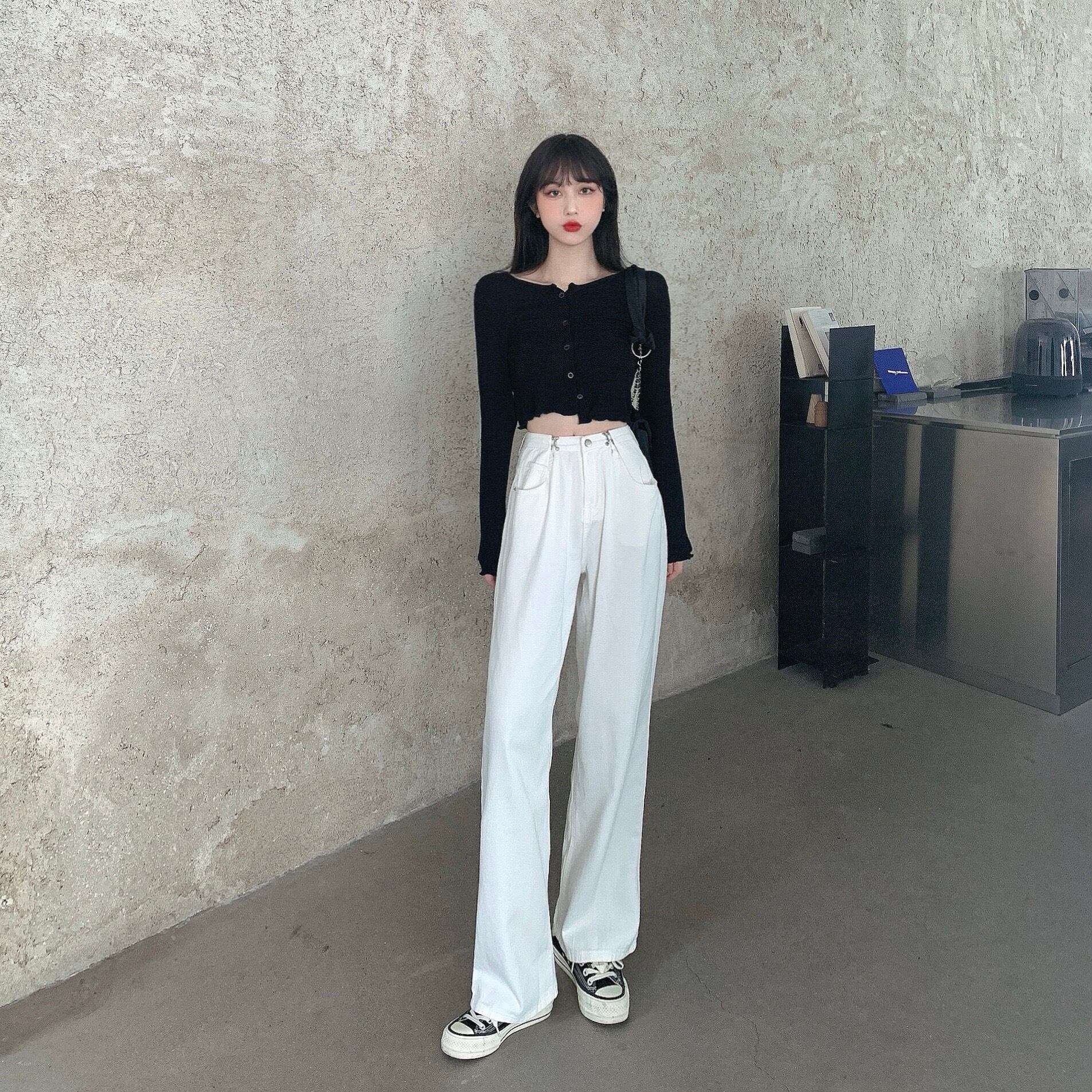 ホワイトハイウェストウェストジーンズ ルーズサマーパンツ スタイル 夏物 試着室96824918472