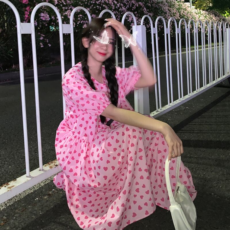 ドレス サマースリーブロングスカート ピンク 夏物 試着室1022696609