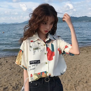 Flowerデザイン シャツ スタンダードスタイルサマー レトロ 大人ガーリー スウィート キュート カジュアル 夏物 フラワーデザイン 試着室29990622161