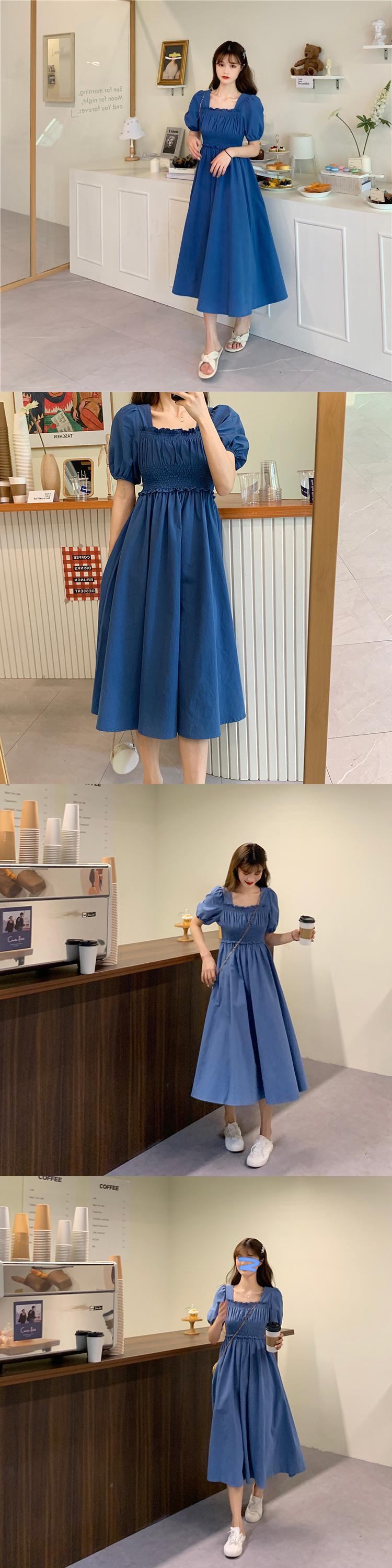 スタンダードスリーブドレス サマーウェスト薄手ロングスカート レトロ 夏物 スクウェア 試着室53496843528