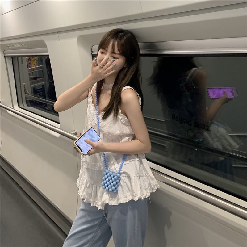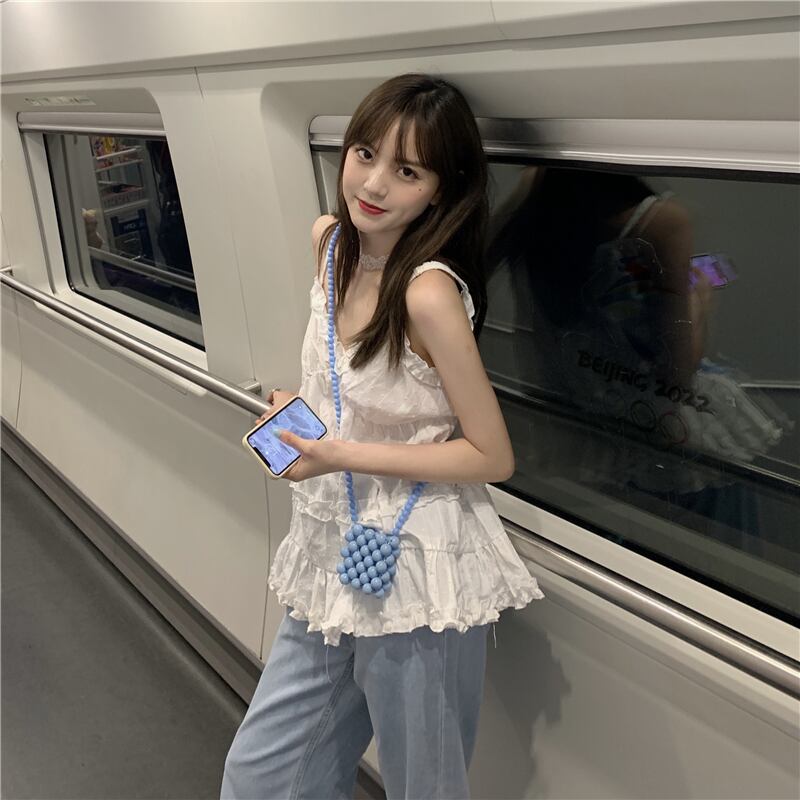 ホワイトサマールーズレッドスタイルバックVネックノースリーブトップス 夏物 試着室56296543981