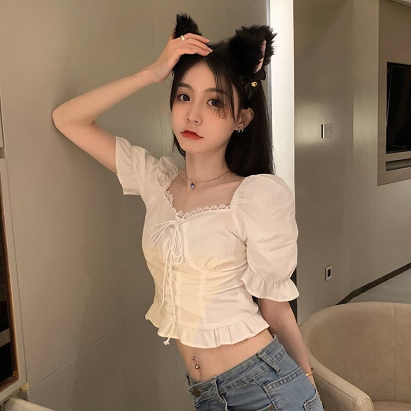 ホワイトウェストシャツ レディーススタンダードスタイルサマーショートトップス レトロ ストリート 夏物 試着室60512864369