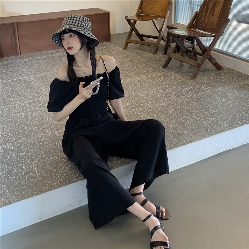 ブラックジャンプスーツ オールインワン レディースサマー薄手ワイドレッグ 夏物 ワイドパンツ 試着室14483888939