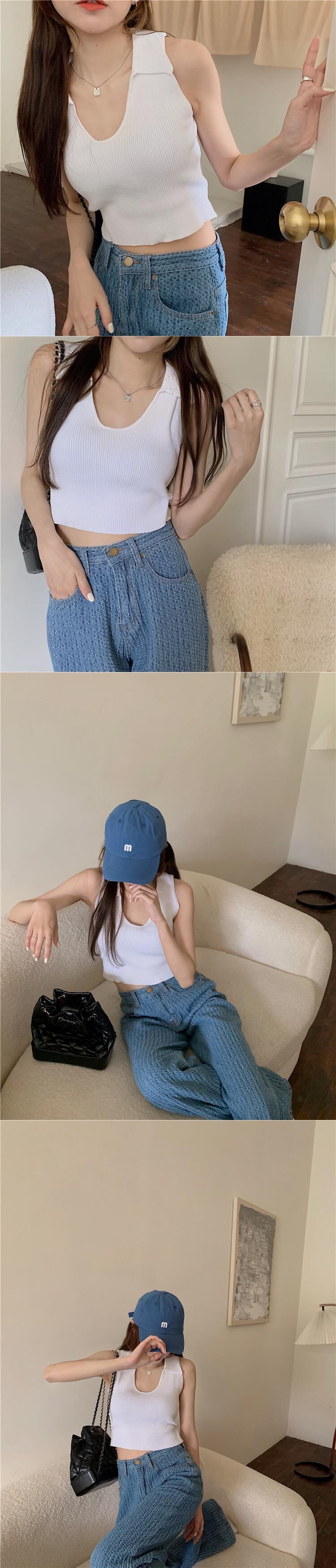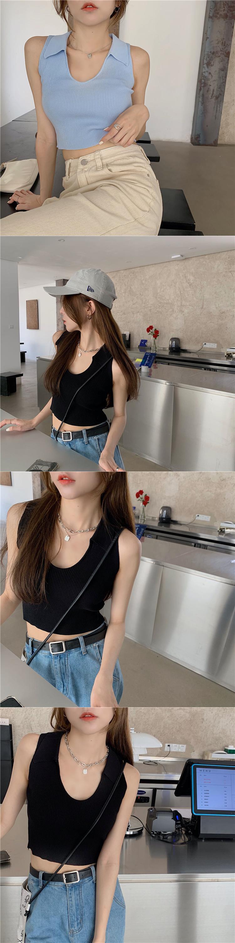 ブルーノースリーブニットサマートップス ショート 夏物 試着室77656445547