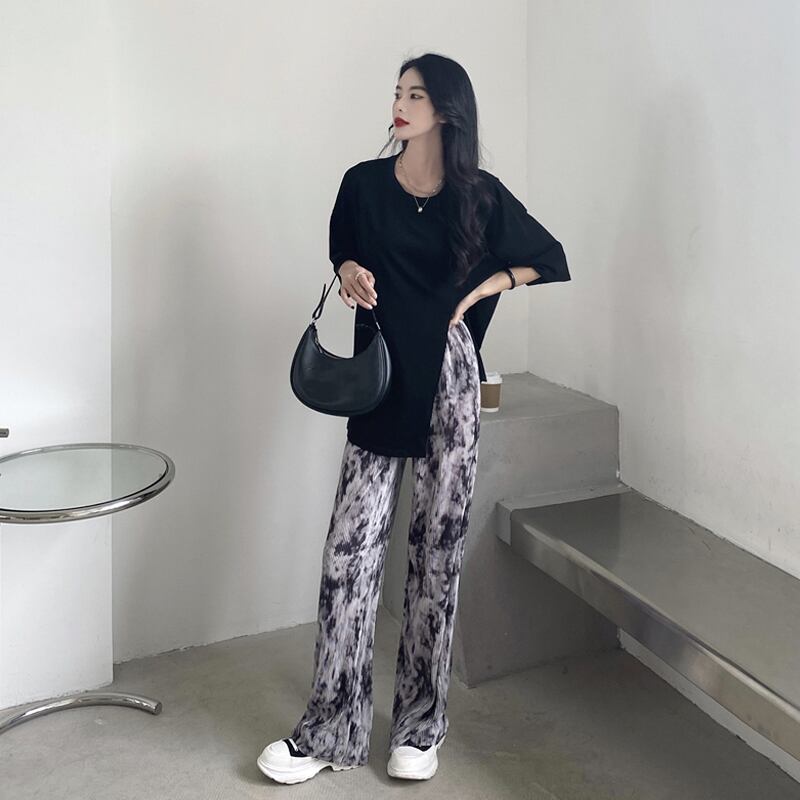 色:絞り染めのズボンワンピース,黒のTシャツシングルピース