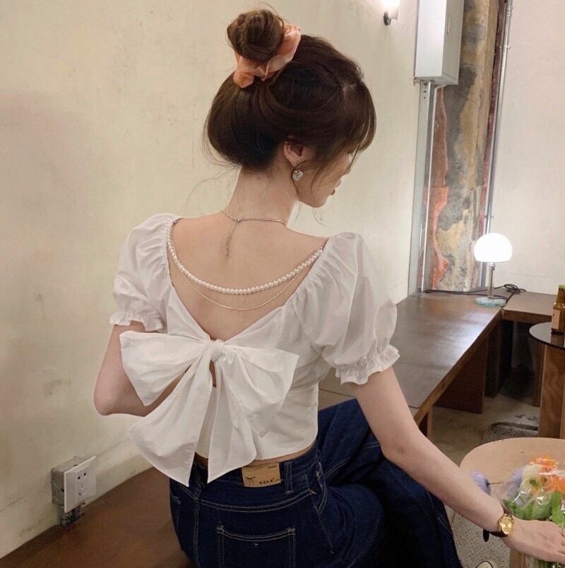 スリーブハイウェストウェストホルターショートトップス サマーホワイトシャツ 夏物 試着室23339311250