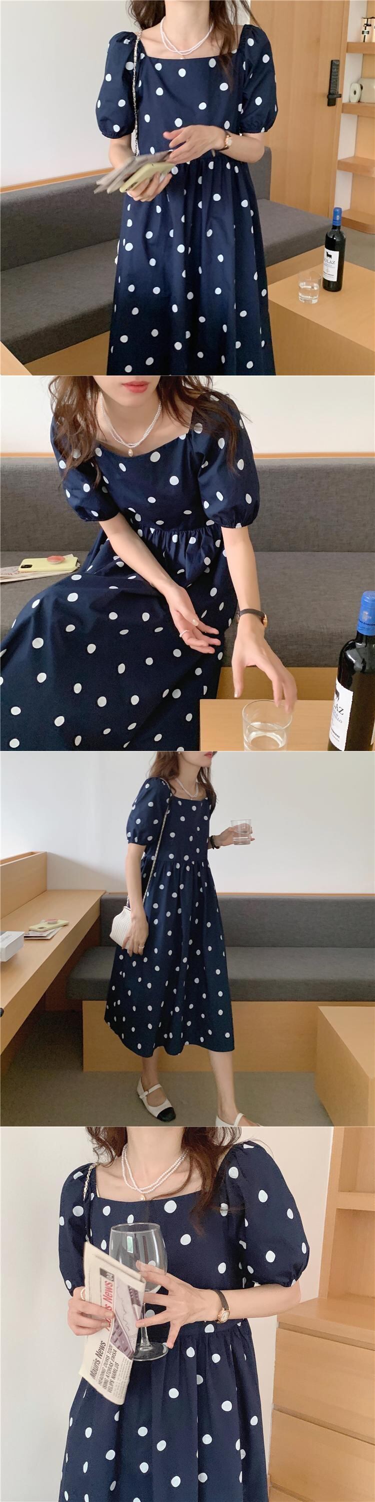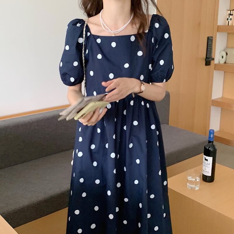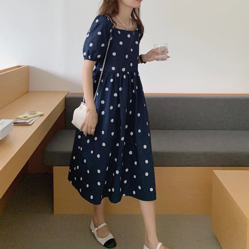 ホワイト水玉スリーブドレス サマーロングスカート 夏物 試着室64243013128