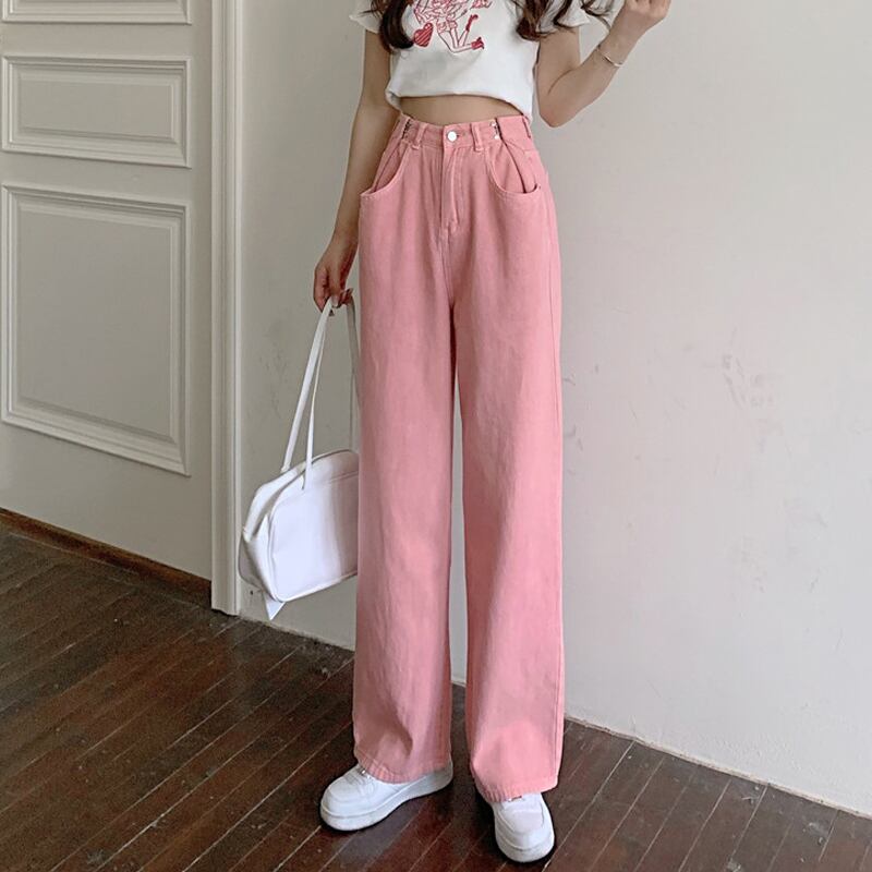 ジーンズ ルーズサマーウェスト薄手ワイドレッグパンツ ピンク 夏物 ワイドパンツ 試着室35692837977