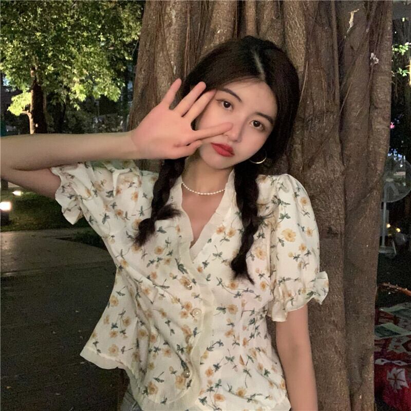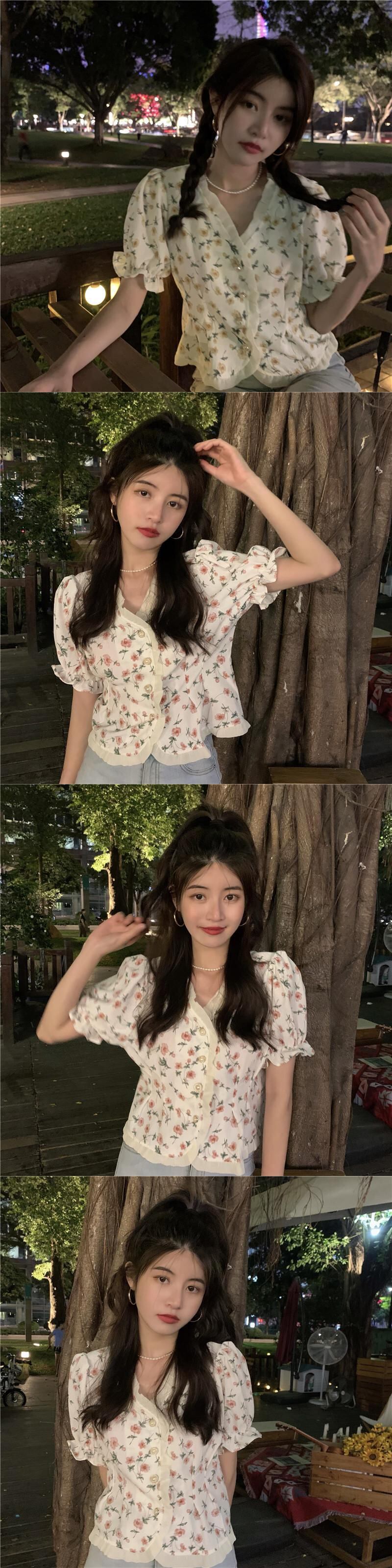 フローラルショートシャツ レディースサマー薄手トップス 夏物 花柄 試着室6704795201