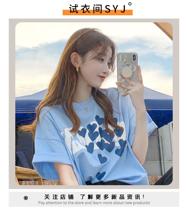 ブルーTシャツ サマー薄手ルーズ 夏物 試着室7066248098