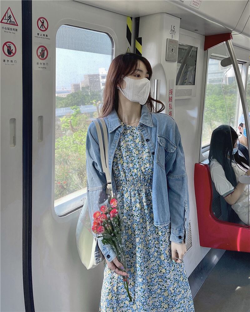スリーブフローラルドレス サマースタイルロングスカート 夏物 花柄 試着室84118900397