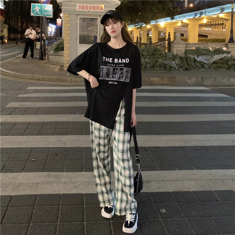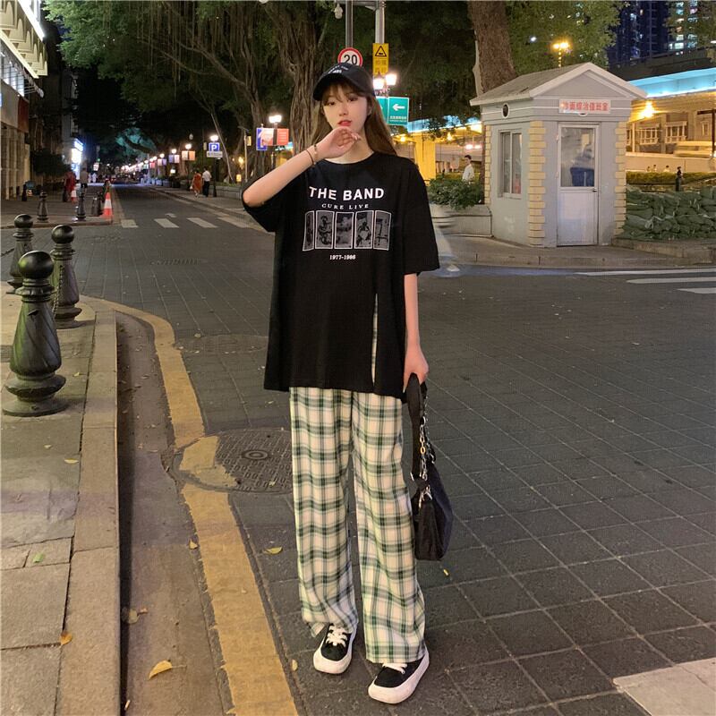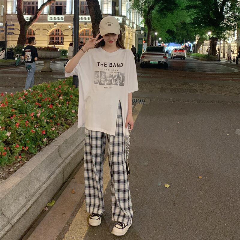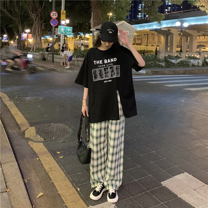 色:ホワイトTシャツシングルピース,黒のTシャツシングルピース,紫のTシャツシングル,赤いTシャツのワンピース,ブラックグリッドパンツワンピース,グリーングリッドパンツワンピース,シングルアプリコットパンツ,ブルーグリッドパンツワンピース