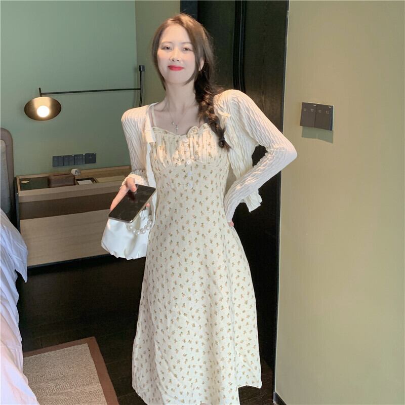 色:ワンピースアプリコットカーディガン,花柄ワンピース一枚