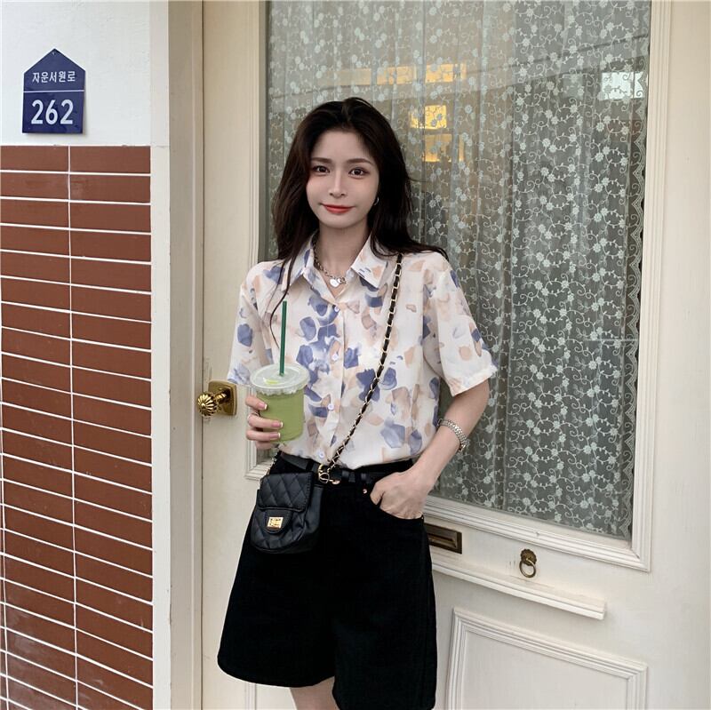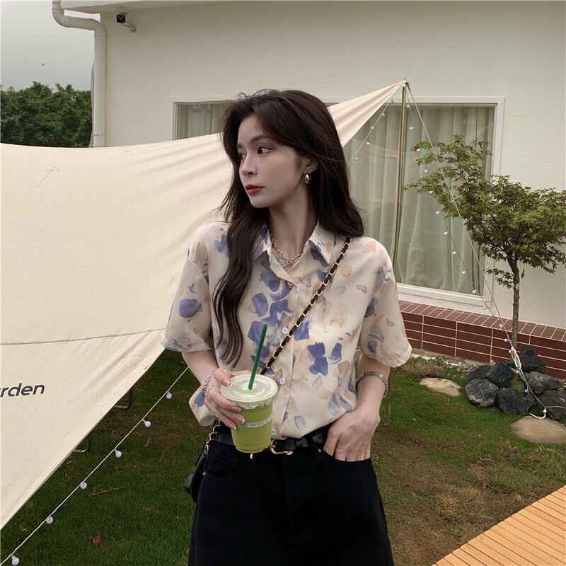 フローラルシフォンシャツ レディースサマー薄手スタンダード レトロ 夏物 花柄 試着室42992695873
