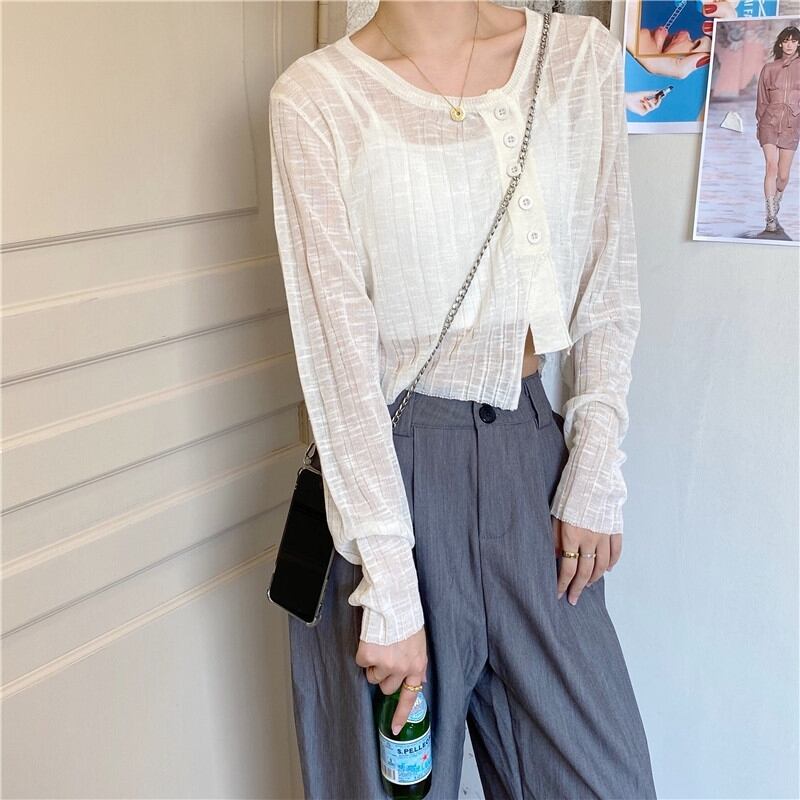 薄手レディースサマーカーディガンホワイトコート ルーズスタイルショートトップス 夏物 シルク 試着室34427280121