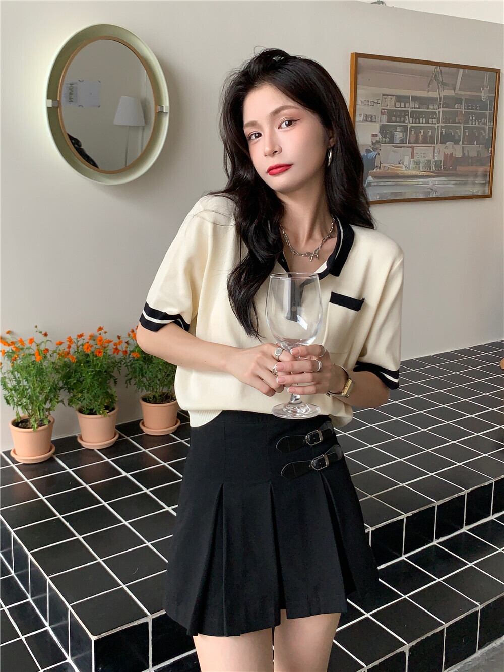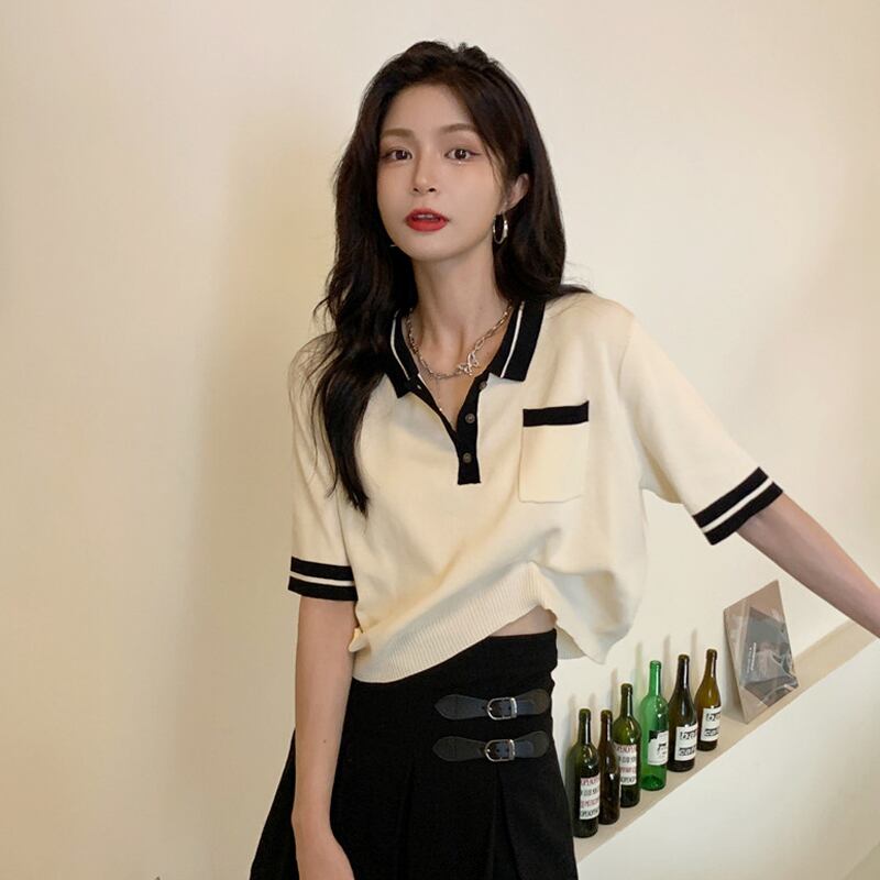 カラーニットショートTシャツ サマースタイルトップス 夏物 試着室98686796004