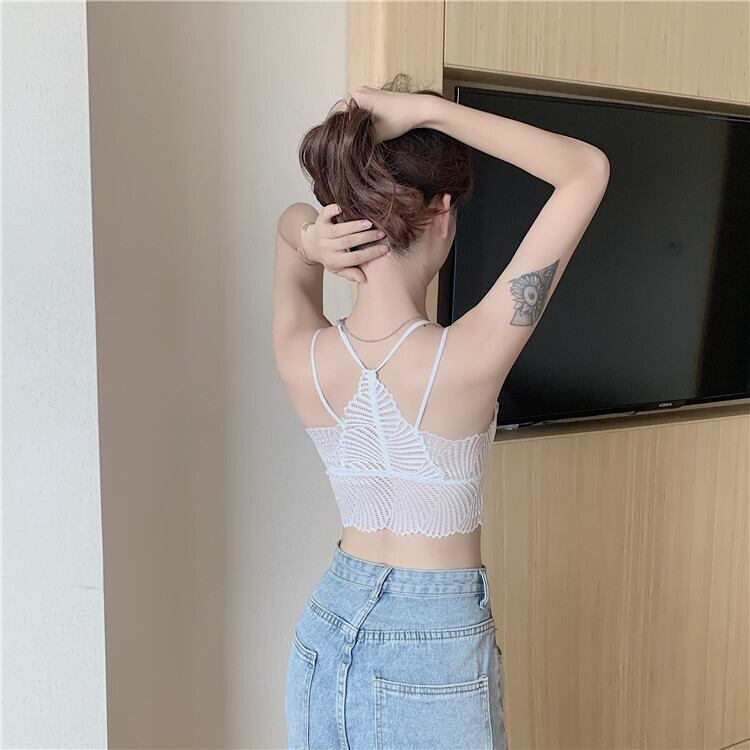 ホワイトトップス レディースサマー薄手バックブラ レッド 夏物 試着室35616372934