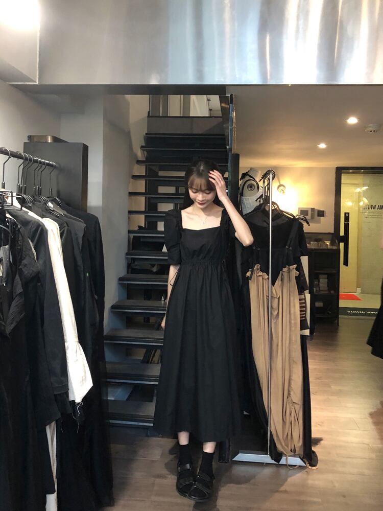 スタイルブラックドレス サマーウェストスリーブロングスカート 夏物 スクウェア 試着室15344761738