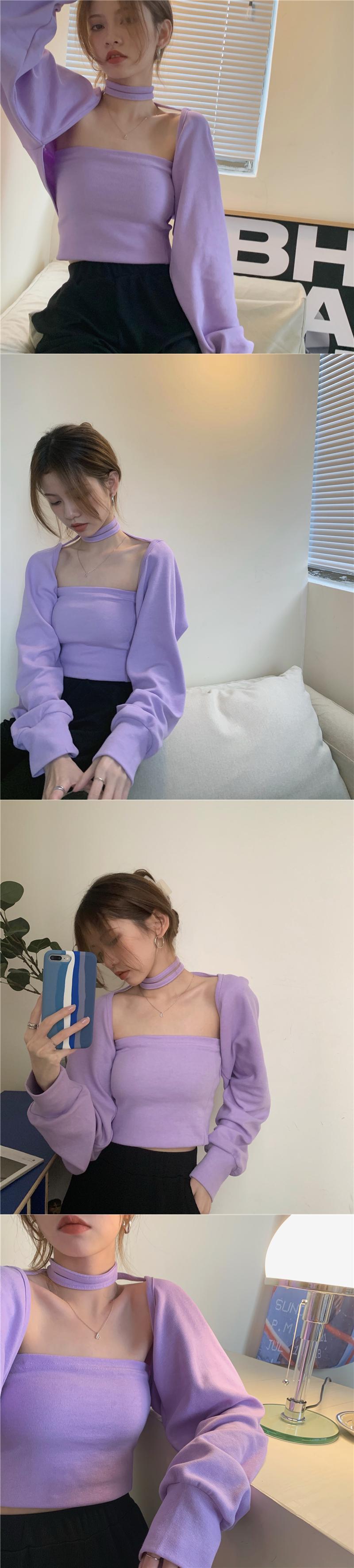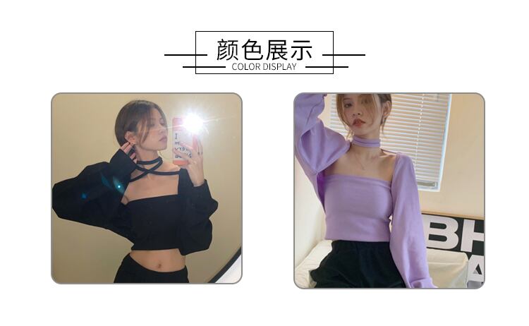 色:黒のコート+包まれた胸,パープルジャケット+ラップチェスト