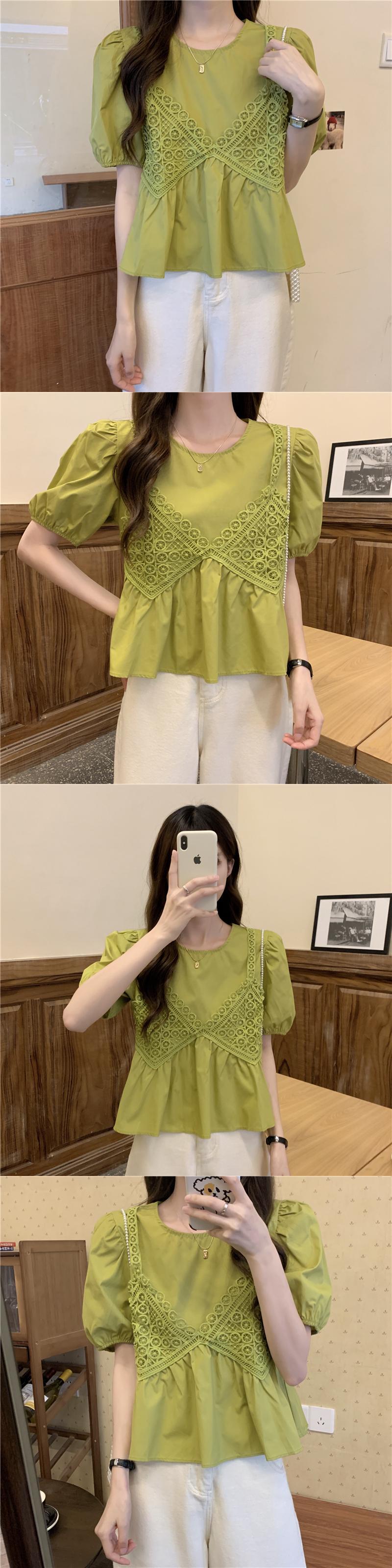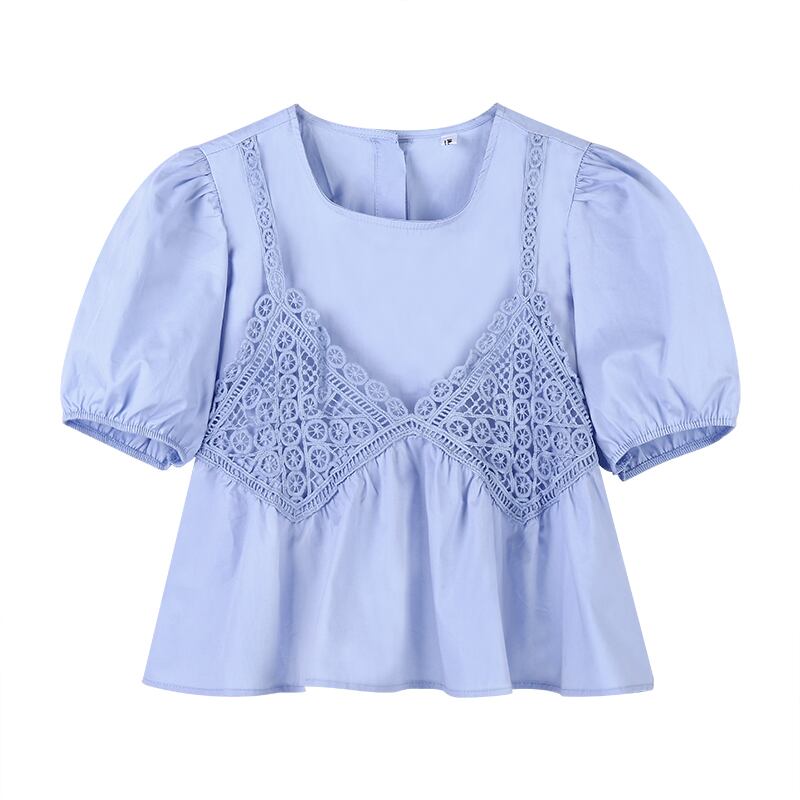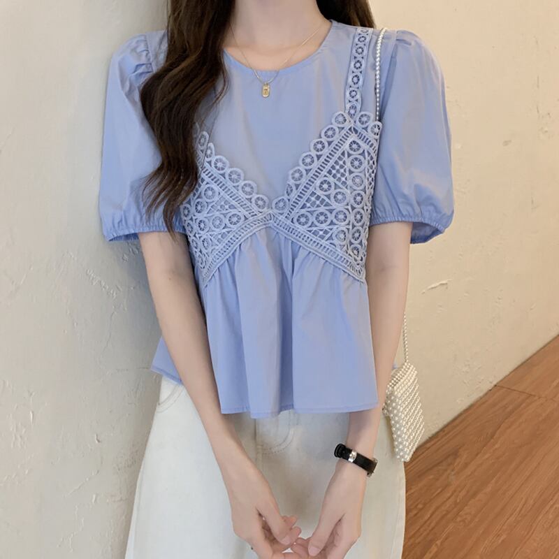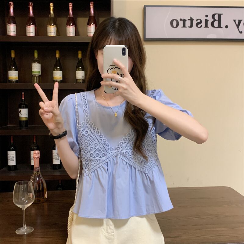 ブルースリーブシャツ サマーショートトップス 大人ガーリー スウィート キュート カジュアル 夏物 試着室22285846738