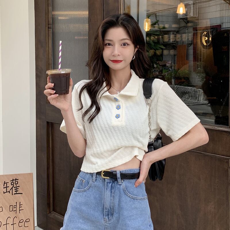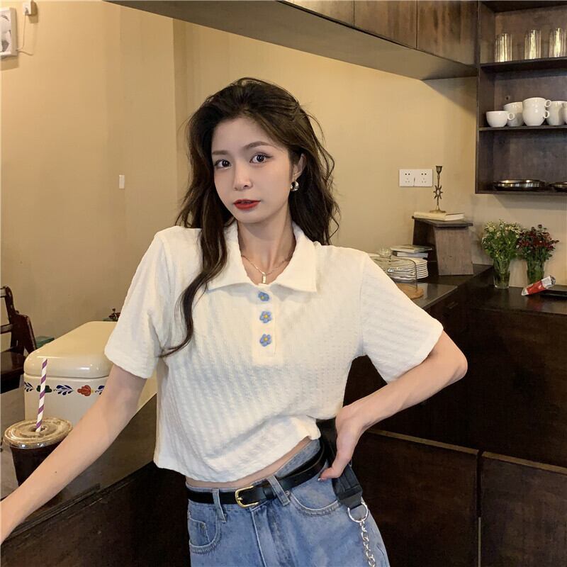 ホワイトショートTシャツ サマーカラートップス 大人ガーリー スウィート キュート カジュアル 夏物 試着室82471987315