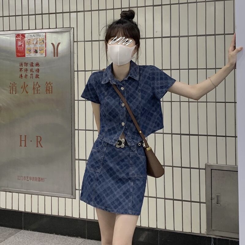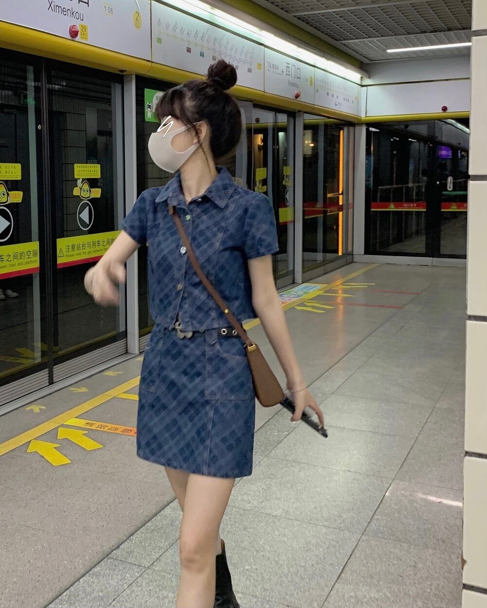 サマーショートトップス ハイウェストウェストスカート 夏物 試着室41114688507