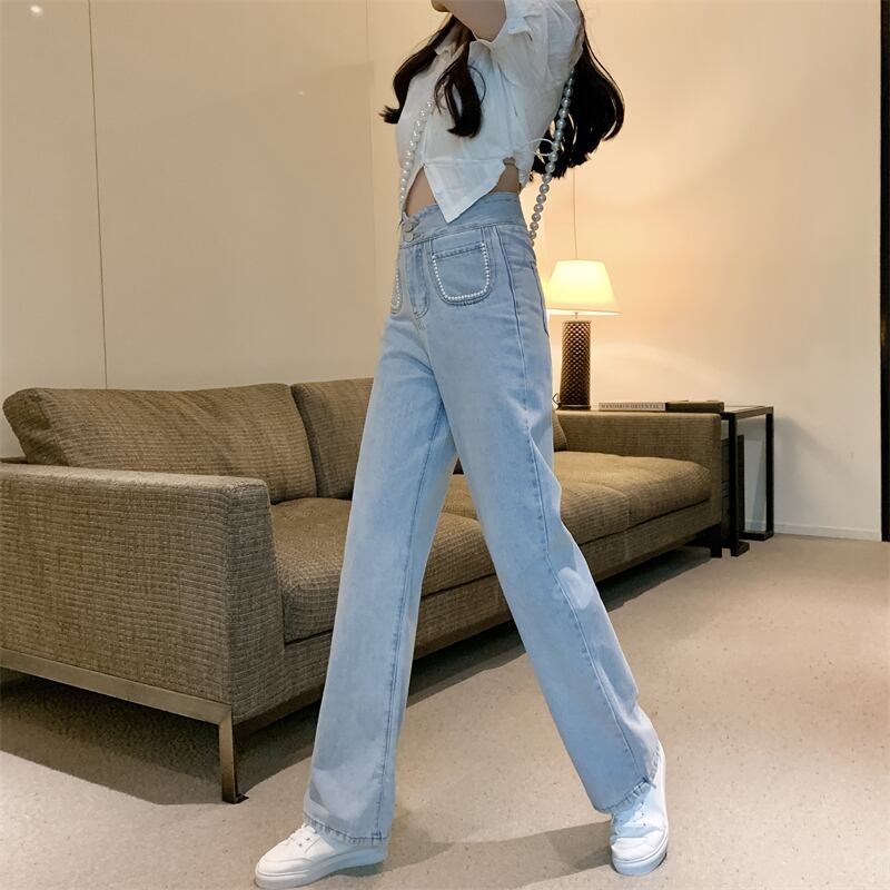 ジーンズ サマールーズハイウェスト薄手パンツ レッド 夏物 試着室84975156280