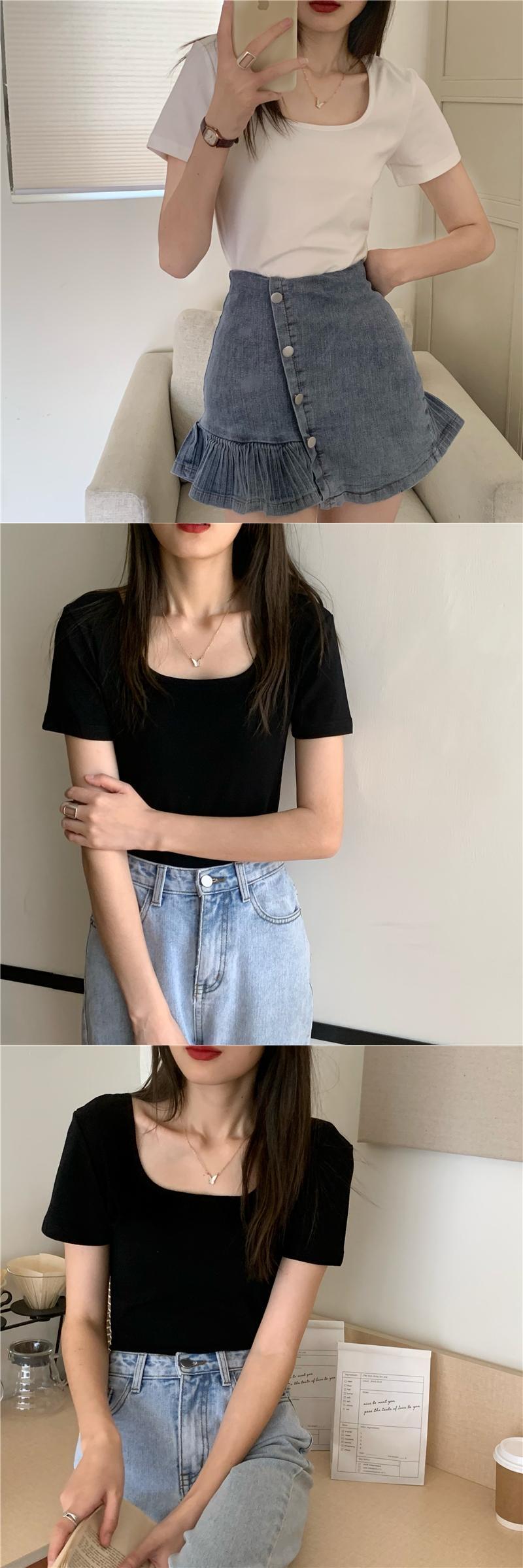 ブラックショートTシャツ サマートップス コットン 夏物 ピュア スクウェア 試着室59489747485