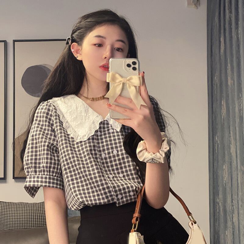 カラー格子柄スリーブシャツ サマートップス 夏物 試着室86999430201