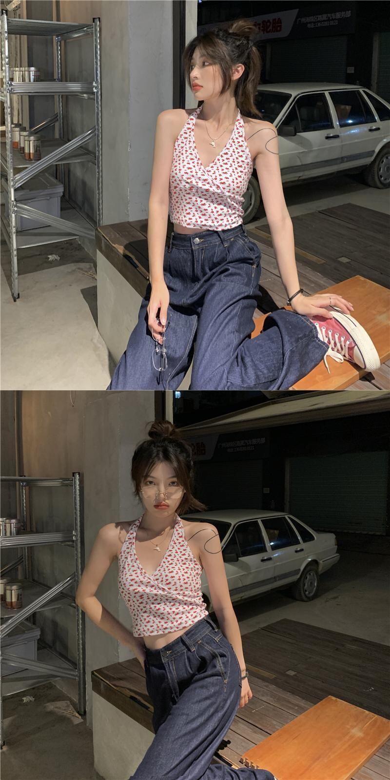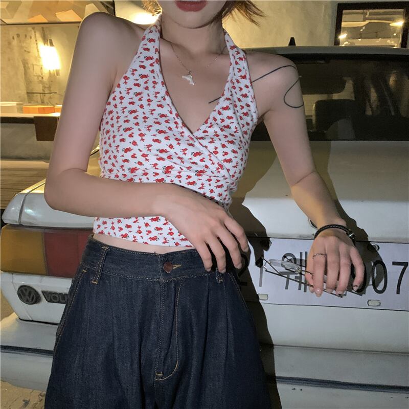 フローラルサマーレッドスタイルトップス ショート 夏物 花柄 試着室85078778906