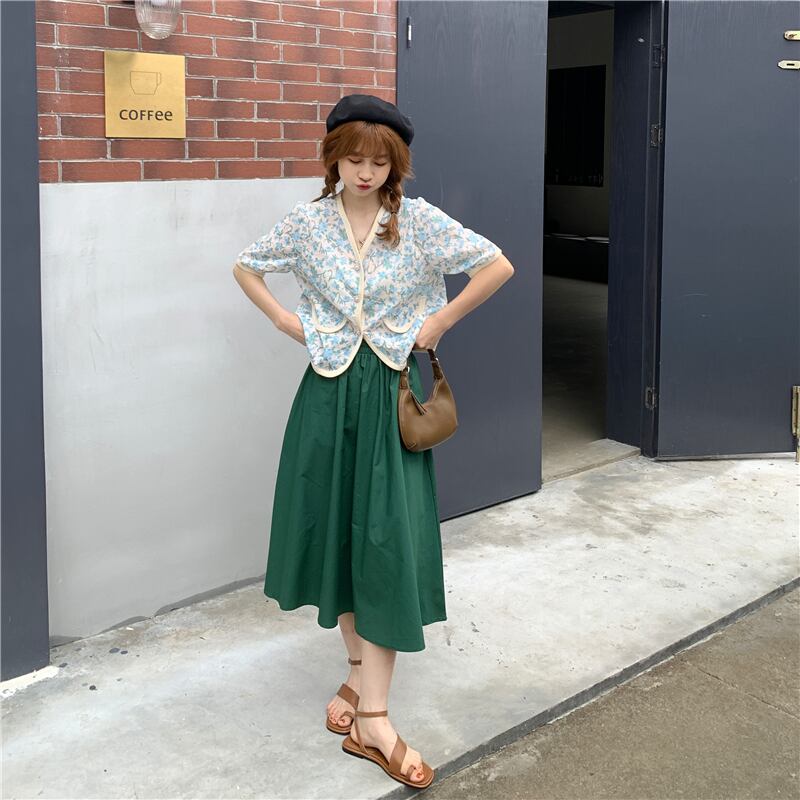 サマーショートシャツ ハイウェストウェストスカート 夏物 試着室17561391101