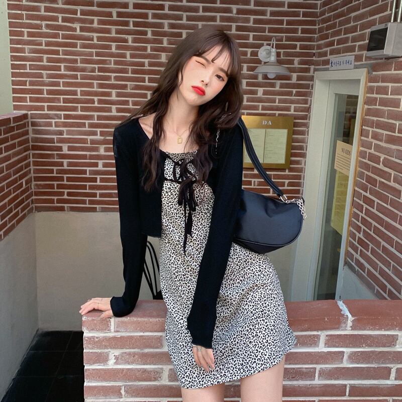 色:ヒョウ柄のサスペンダースカートワンピース,ヒョウ柄ベストワンピース,長袖カーディガンワンピース,シングル半袖カーディガン
