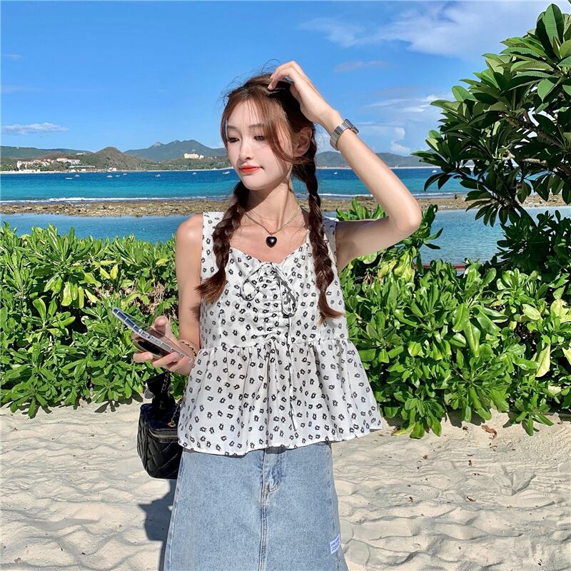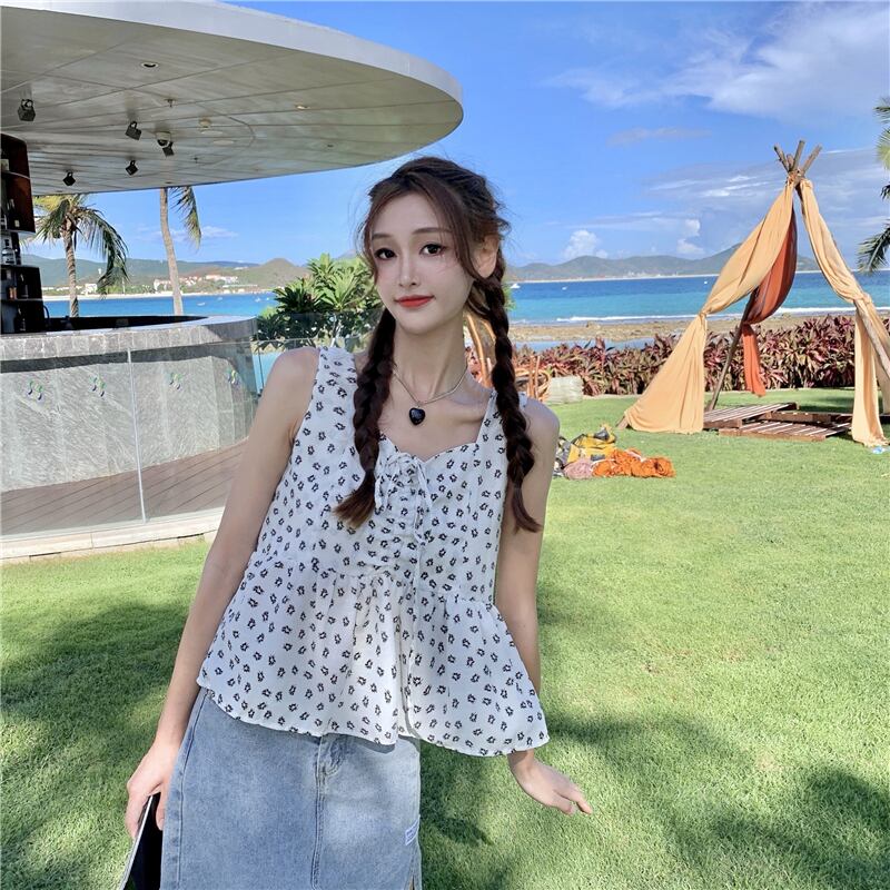 フローラルサマーノースリーブトップス 大人ガーリー スウィート キュート カジュアル 夏物 花柄 試着室43873843739