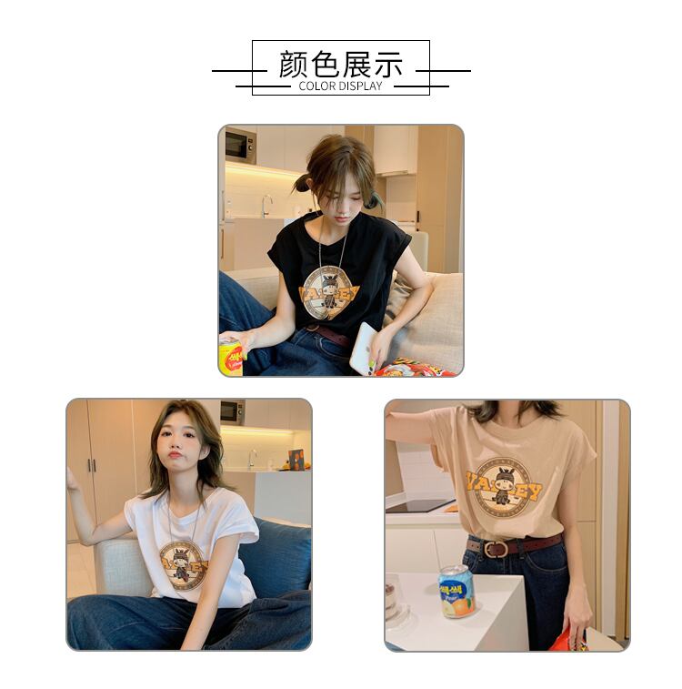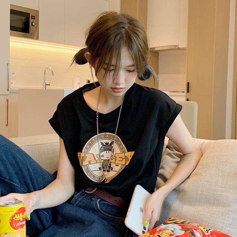 ホワイトノースリーブTシャツ サマースタイルルーズ 夏物 試着室17334369152