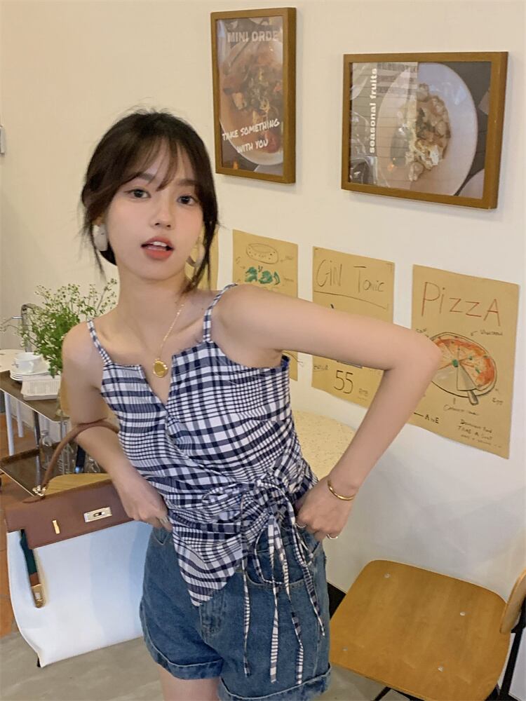 格子柄サマートップス ショート 夏物 試着室67356046931