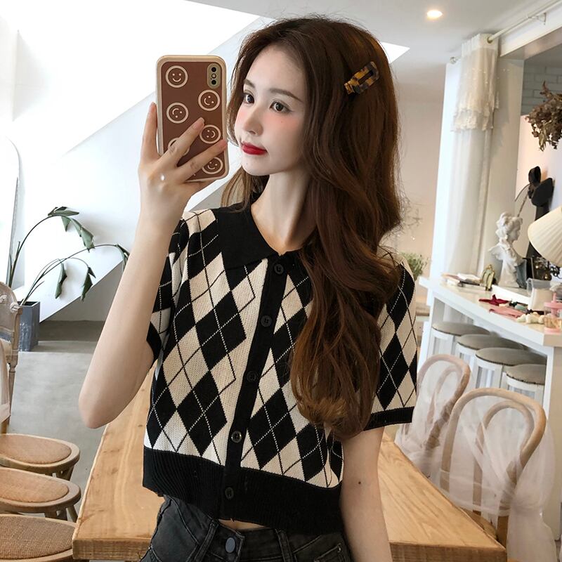 カラー半袖スリーブニットカーディガンサマースタイルトップス ショート ハーフスリーブ 夏物 試着室52820819185