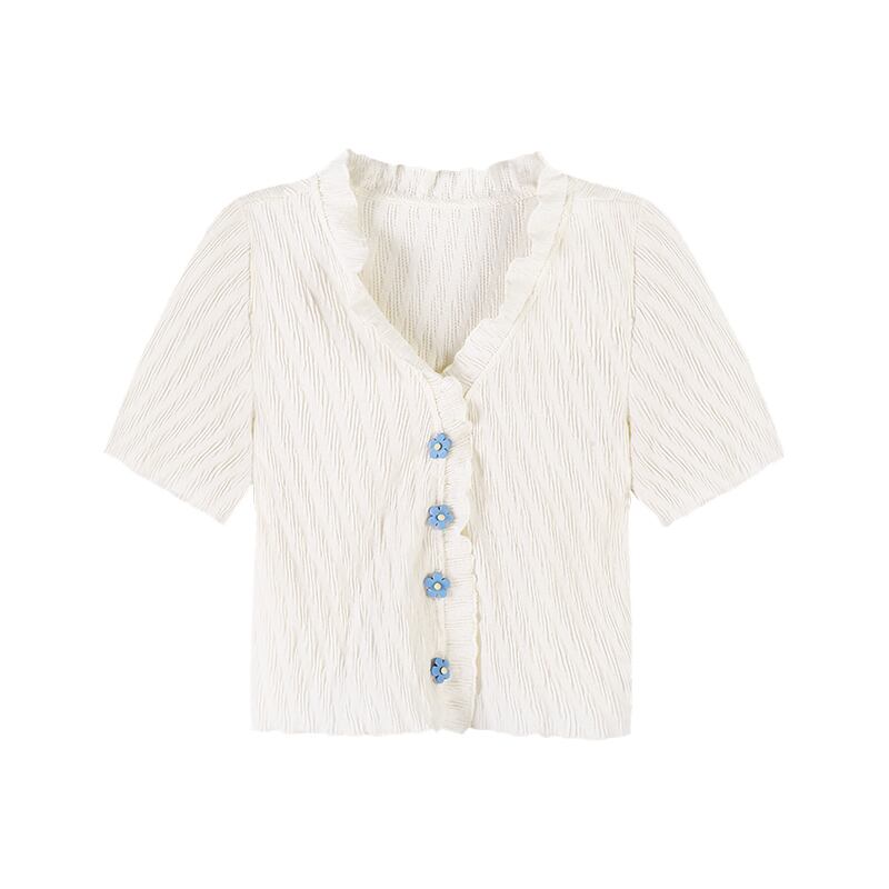 ショートトップス サマー薄手Vネックニットカーディガン 夏物 試着室4880435314