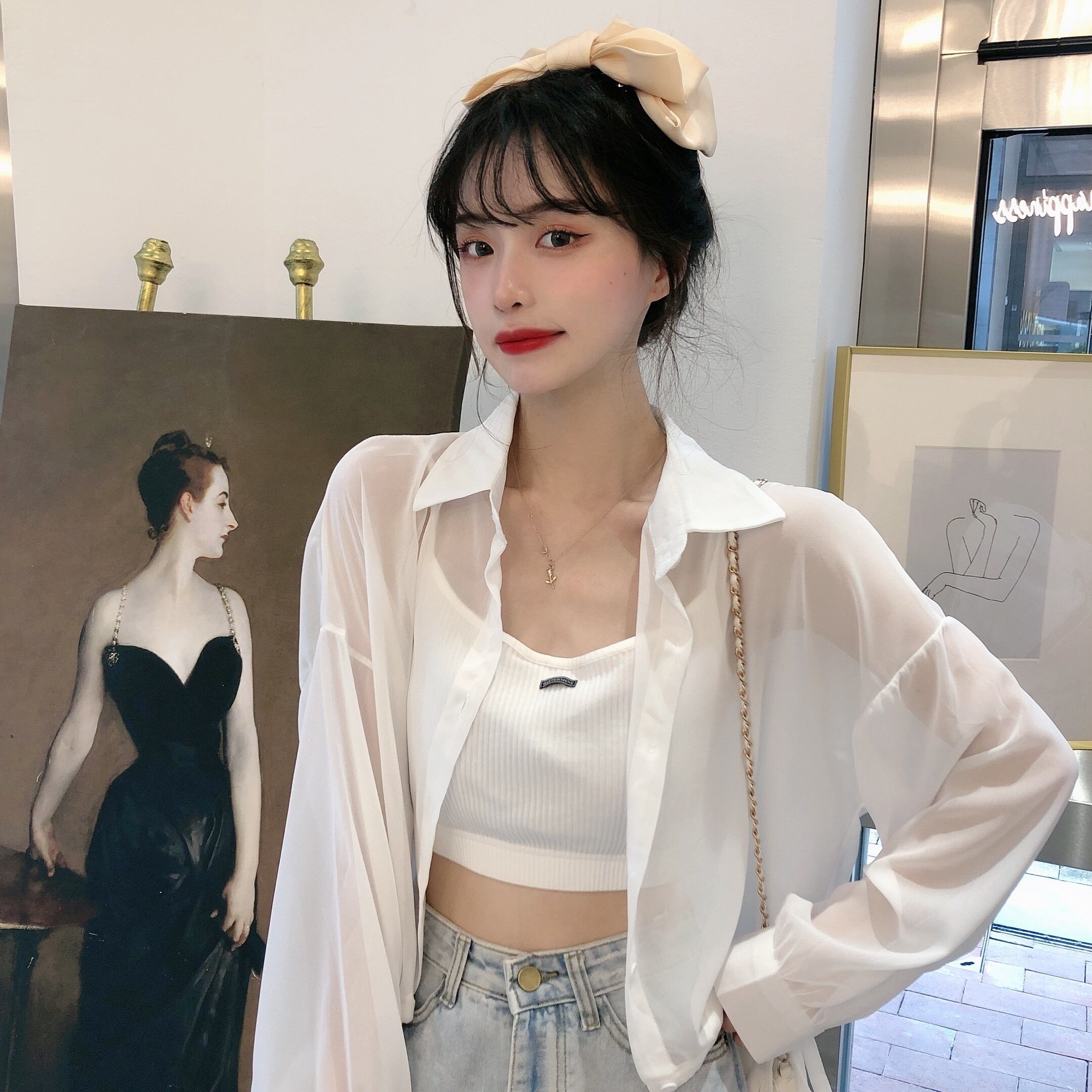 薄手サマーシャツ ジャケット ルーズショートホワイトトップス ロング 夏物 試着室94028540818