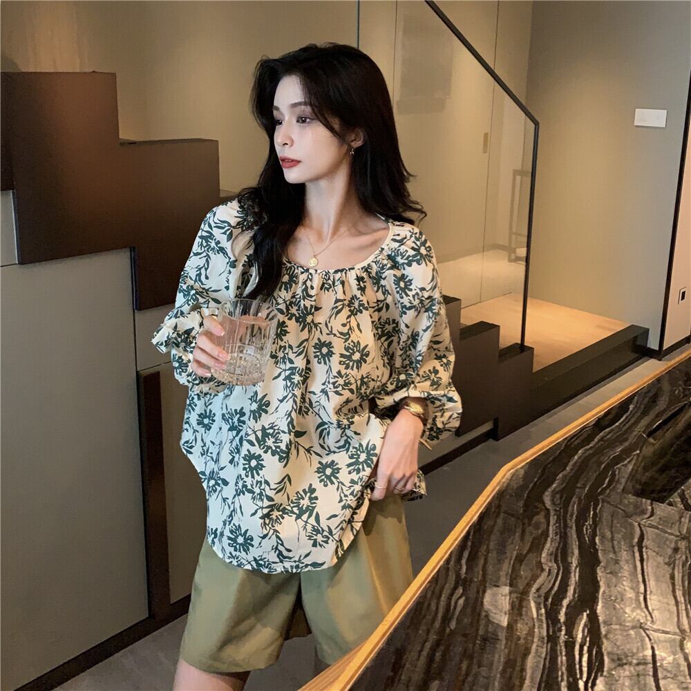 色:シングルフローラルシャツ,カーキカジュアルパンツワンピース