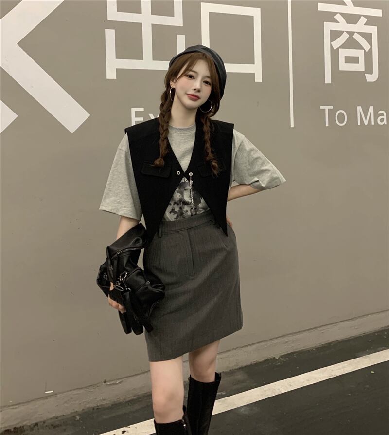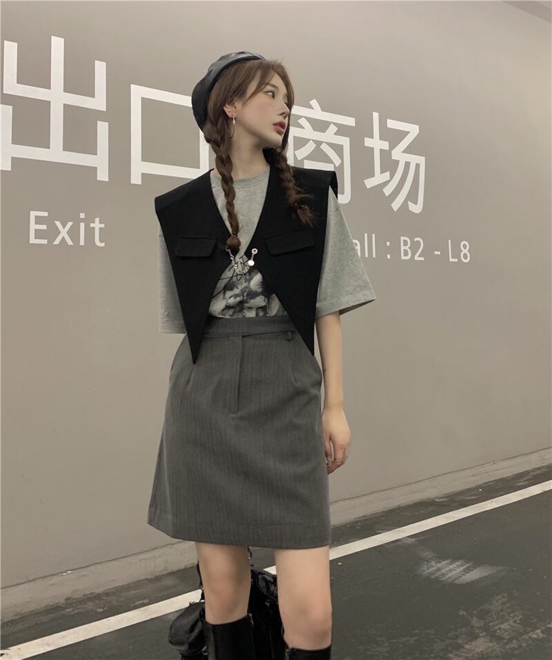 色:プリント半袖ワンピース,チェーンベスト一枚,ワンピーススカート