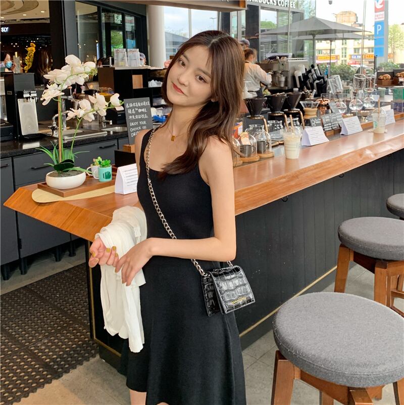 色:白いセーターワンピース,ブラックサスペンダードレスワンピース