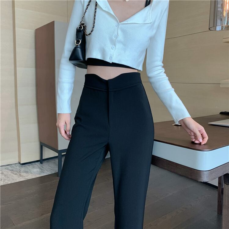 ブラックパンツ スプリングオータムハイウェストウェストスリムカジュアル レッド 春物 秋物 試着室57852540565