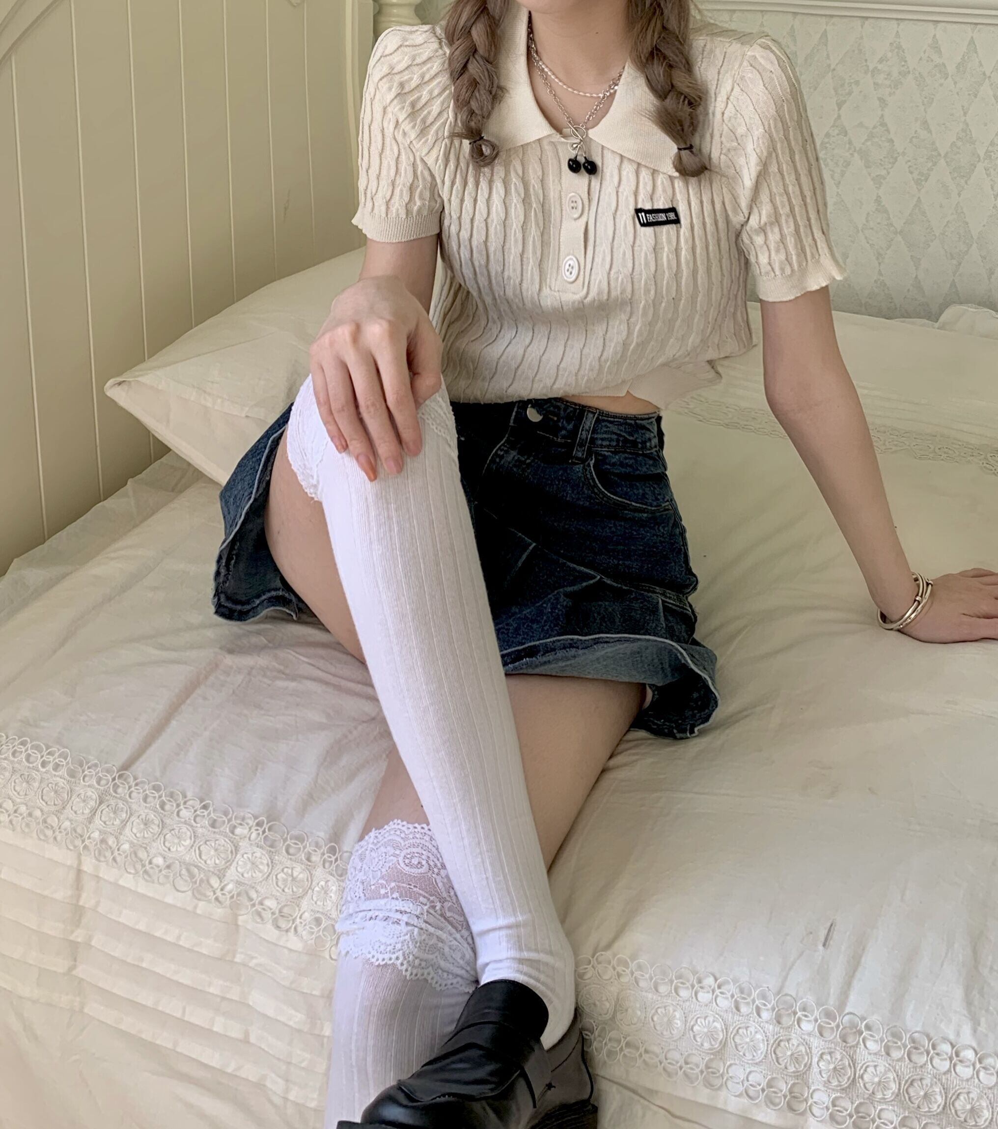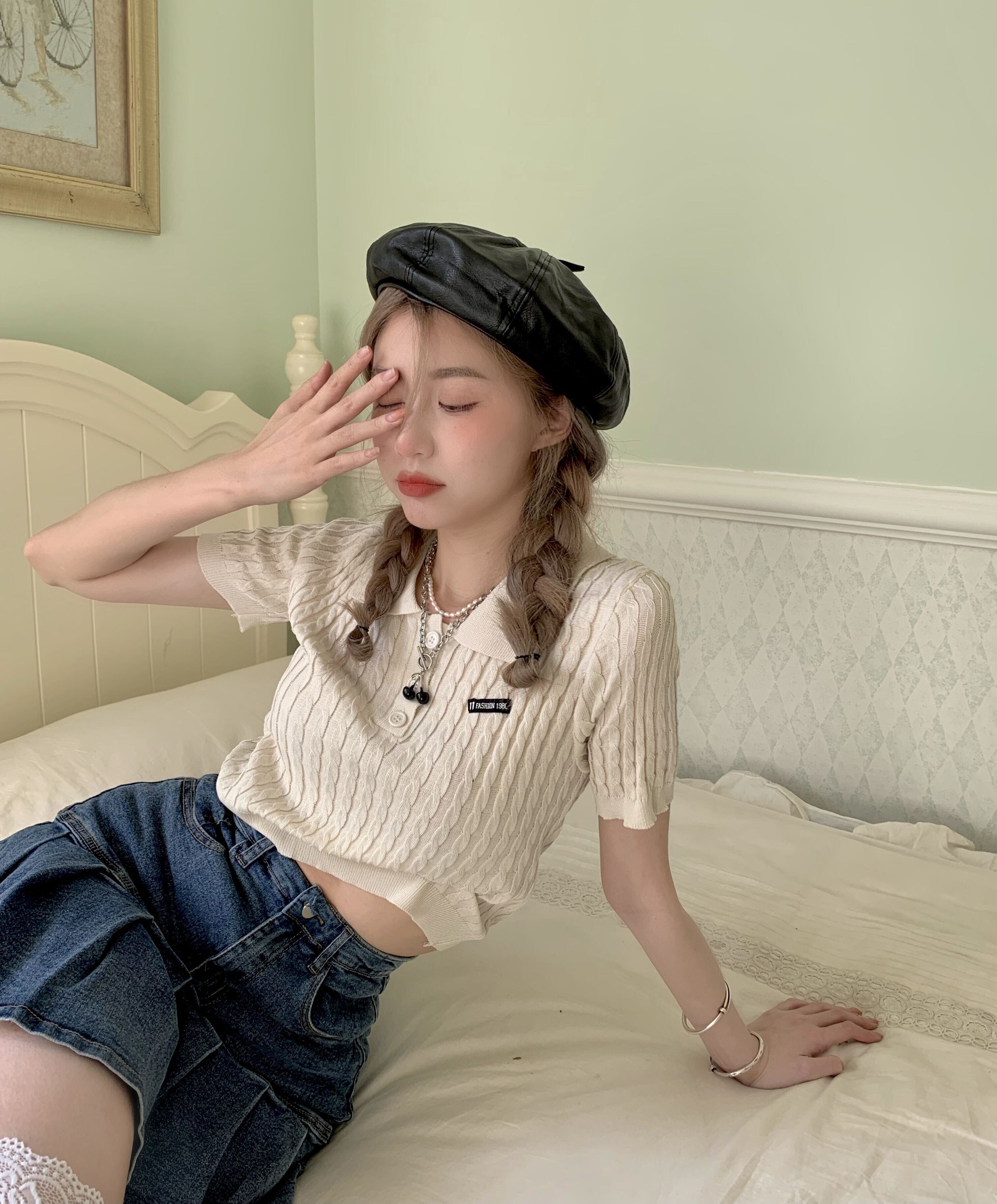 カラーニットショートTシャツ サマーハイウェストウェストドレス 大人ガーリー スウィート キュート カジュアル 夏物 試着室97064154505